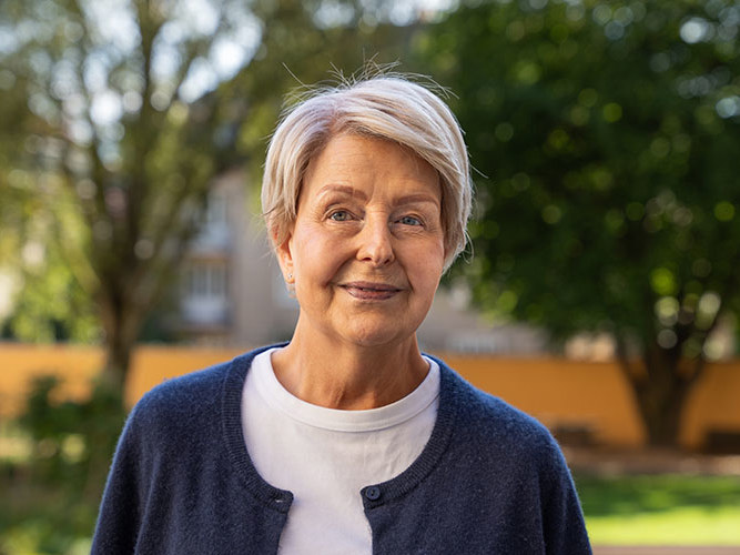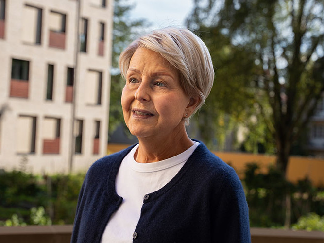 Katrine Rakeng (63) har levd med brystkreft i 15 år og holdt sykdommen i sjakk med ulike behandlinger. Da hun fikk alvorlig spredning til leveren, fikk hun beskjed om at det offentlige ikke hadde mer å tilby henne – men at private som Aleris hadde flere behandlingsmuligheter. – Jeg er veldig takknemlig for at jeg hos Aleris kunne få innovativ medisin, uten dere hadde jeg ikke vært her i dag, sier Katrine. Etter få uker med behandling var hun betydelig bedre og spredningen redusert.