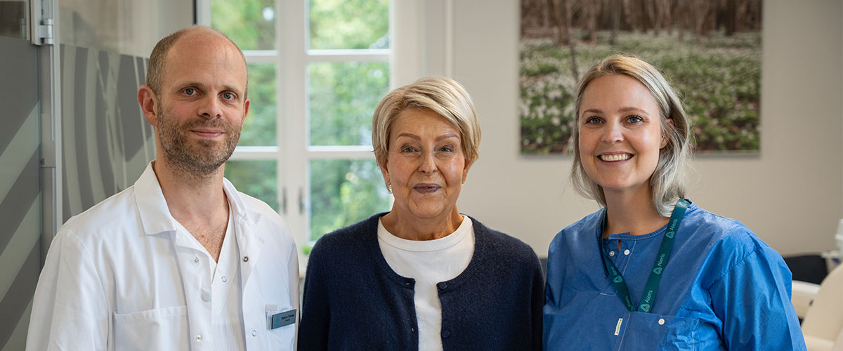– Jeg fikk umiddelbart en god følelse. Øystein har et rolig og behagelig vesen, og han hadde på forhånd satt seg godt inn i sykdomshistorikken min og behandlingsalternativene. Alle jeg har møtt hos Aleris har vært veldig hjelpsomme og imøtekommende, og det er en god og behagelig atmosfære hos dere, forteller Katrine.