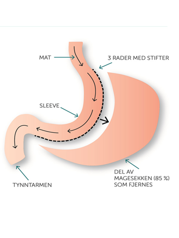 Gastric sleeve er en anerkjent og effektiv metode for behandling av sykelig overvekt. Ved operasjonen fjernes omtrent 85 % av magesekken, slik at det som gjenstår er en smal, rørformet magesekk med et volum på ca. 100–150 ml.